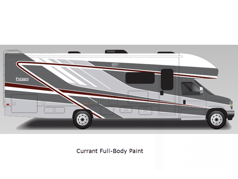 - Fiberglass exterior walls with partial paint and vinyl graphics