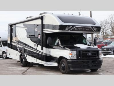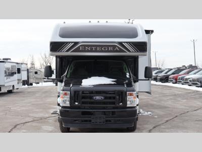 Make one of these Entegra Coach Esteem Class C gas motorhomes your own! The interior design includes solid-surface countertops that pair well with the many technological upgrades. The fully custom-molded ABS surround in the cab area features its signature panoramic window and power shade for a beautiful view while you drive and provide privacy at night. They also come with E-Z Drive Elite which has a computer-balanced driveshaft, Koni FSD shocks, Hellwig helper springs, and a heavy-duty rear stabilizer bar for a smooth ride. Automatic leveling jacks will make set-up a breeze and the electric awning with LED lights will create an outdoor living space where you can relax after unpacking. Inside, you'll enjoy hardwood cabinet doors and drawer fronts, blackout night roller shades, and high-intensity recessed LED ceiling lights to keep your space well lit. There is also a JBL audio system and a BMPRO total coach control system to easily manage your unit's functions!