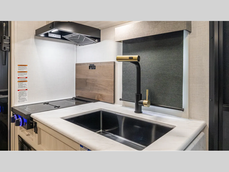 Sleeps 3 Slides 1 Length 23 ft 7 in Ext Width 7 ft 4 in Ext Height 10 ft 9 in Hitch Weight 449 lbs GVWR 5649 lbs Dry Weight 3917 lbs Cargo Capacity 1732 lbs Fresh Water Capacity 30 gals Grey Water Capacity 30 gals Black Water Capacity 30 gals Available Beds Queen Refrigerator Type 12V Black Glass Refrigerator Size 10 cu ft Convection Cooking Yes Cooktop Burners 2 Number of Awnings 1 Water Heater Type Tankless AC BTU 15000 btu TV Info LR HD TV Awning Info 15' Electric w/LED Light Strip Axle Count 1 Shower Type Standard Electrical Service 30 amp Solar Wattage 200 watts Similar Floorplans